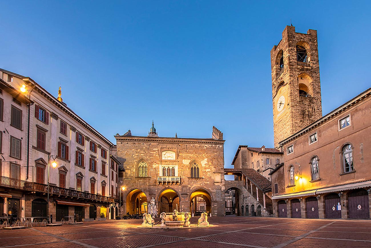 Built where once was the ancient Roman forum, Piazza Vecchia has been the heart of political power for centuries and is today considered the center of Città Alta (Upper Town), a place for meetings and social life. On one side of the square stands the Palazzo della Ragione, center of the medieval town, where public edicts were issued and business were carried out. Nearby stands the City Tower, which the Bergamask people prefer to call the ‘Campanone’ (Big Bell) with the oldest bell in Lombardy. From the top reached by foot (230 steps) or by lift, you can enjoy a breathtaking panoramic view.