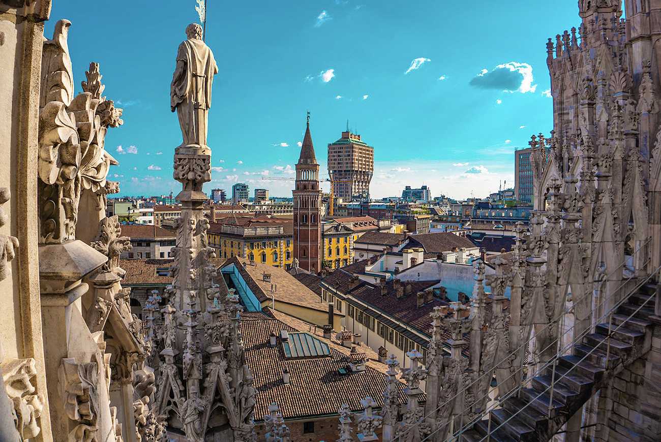 Milan, the capital of the Lombardy region, thrums with an energy unlike any other. It is the second most populous city in Italy and the main industrial and financial center, home to the national stock exchange. History echoes from ancient cobblestones, while fashion struts along modern avenues such as the Galleria Vittorio Emanuele II. This picturesque meeting point, a covered arcade with an iron and glass framework and the oldest shopping center in the world, acts as a central hub leading to both Piazza della Scala, where the famous opera house and concert hall is located, and Piazza Duomo, dominated by the magnificent Cathedral with its intricate Gothic spires. By stepping inside the Duomo, you’re dwarfed by the high standing columns and the stained glass windows that shimmer with a thousand colors. The visionary Leonardo da Vinci once lent his engineering expertise to the now-trendy Navigli canals. Today, these canals boast cozy bars that transform into vibrant nightlife destinations. A different side of da Vinci’s genius can be seen in the famed fresco, L’Ultima Cena (The Last Supper), housed at Santa Maria delle Grazie church. Other city landmarks include the brick-built Sforza Castle, once a powerful fortress and now boasting extensive art museums, and the historic opera house La Scala, one of the world's leading theaters for opera and ballet, renowned for its grand architecture and prestigious performances. There is also a Modern Milan, the sleek skyscrapers of the Porta Nuova district piercing the skyline, a testament to the city's constant evolution. Whether you're a history buff, a fashion aficionado, a foodie, or simply a seeker of vibrant experiences, Milan has something waiting to surprise and delight you.
