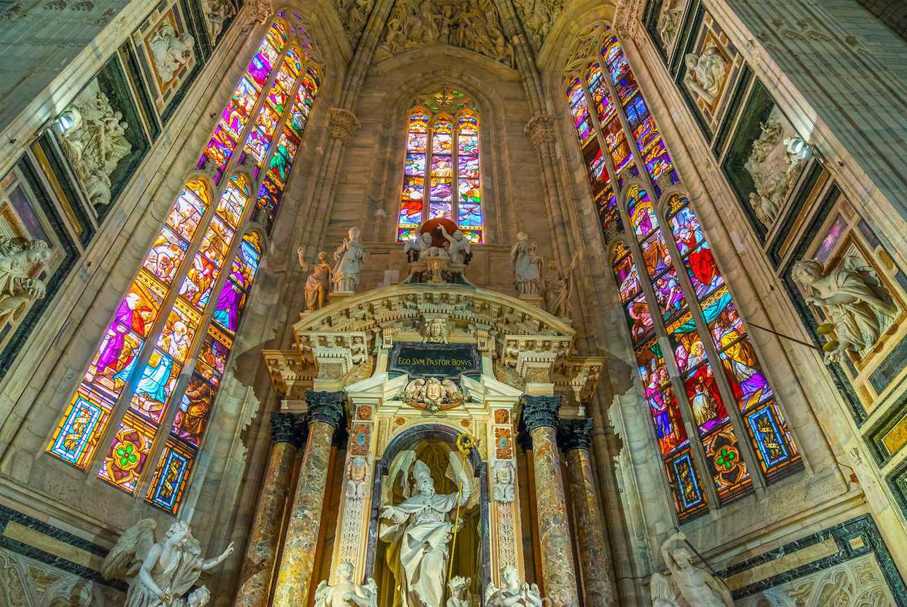 The most impressive building in Milan and one of the largest churches in the world. Nowhere else will you find a structure with 3,400 statues, weighing 325,000 tons! The Duomo’s 55 stained glass windows include over 3,600 characters; it also has 200 bas-reliefs, 96 gargoyles and 700 figures. The Duomo’s 135 marble slender spires give this monument its unique outline. On the rooftop you can fully appreciate the architecture and the breathtaking views over the city. The construction of the Duomo officially began in 1386 founded by Milan’s ruler Gian Galeazzo Visconti, founder of the Veneranda Fabbrica del Duomo di Milano, a 600-year-old organization that was established to supervise the construction of the Milan Cathedral. Today, it is still actively involved in the preservation of the building with a project that began in 2002. Routine restorations and cleaning are continually taking place to maintain its gleaming stone, making the Duomo the longest-worked cathedral in the world.