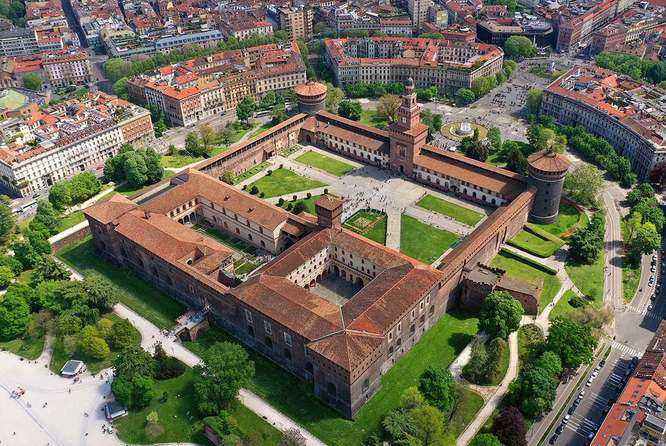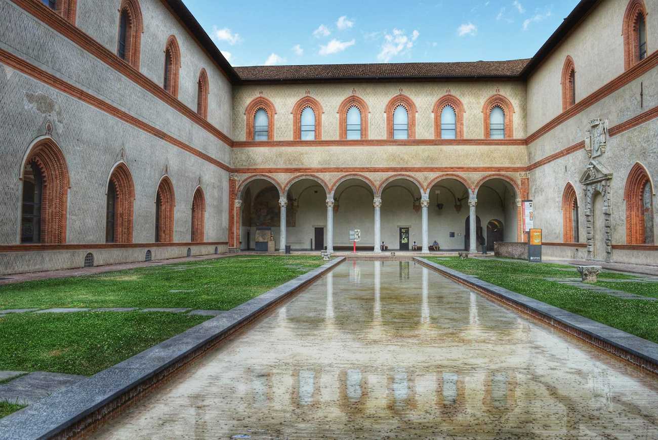 The Sforza Castle was built during the 14th century and today is one of the most astounding fortified structures in Italy and one of the largest in Europe. It has transformed over the course of several centuries by the will of the various noble families who have governed it or during its foreign dominations. After post World War II restoration, the castle was reborn as a cultural center and home of several museums and exhibitions such as the Egyptian museum, the Musical Instruments Museum and the Antique Furniture and Wooden Sculpture Museum. Its highlights are the Rondanini Pietà, the last and unfinished work by Michelangelo, and the ‘Sala delle Asse’ by Leonardo da Vinci, becoming dear to the hearts of the Milanese and as such, a symbol of the city.