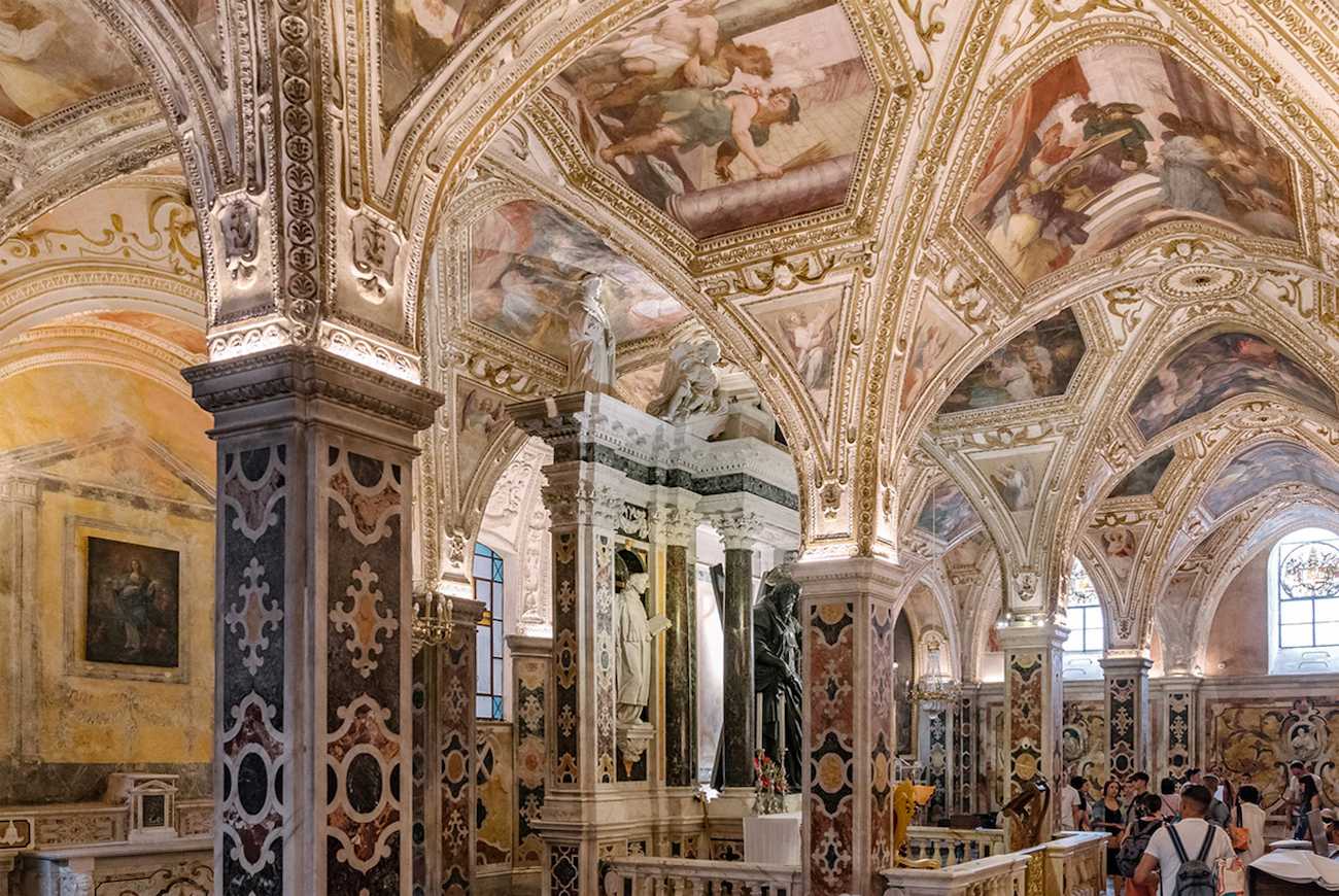The church of Saint Catherine of Alexandria was established by the Dominican Order in 1311. The convent offered assistance to the weakest and most disadvantaged women such as prostitutes, but by 1532 it turned markedly to the cloister of the noble classes, making necessary a widening of the building. Between 1566 and 1596 the church was rebuilt and consecrated in 1664. The marble inlay panels at the base of the pilasters of the central nave are of the highest quality, especially the episode of Jonah and the whale, and the Sacrifice of Isaac. In 2014 it ceased to be a convent and in 2017 it became a museum. Inside the monastery there’s the confectionery selling pastries made with the nun’s old recipes.