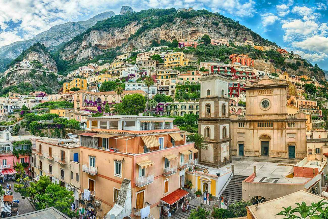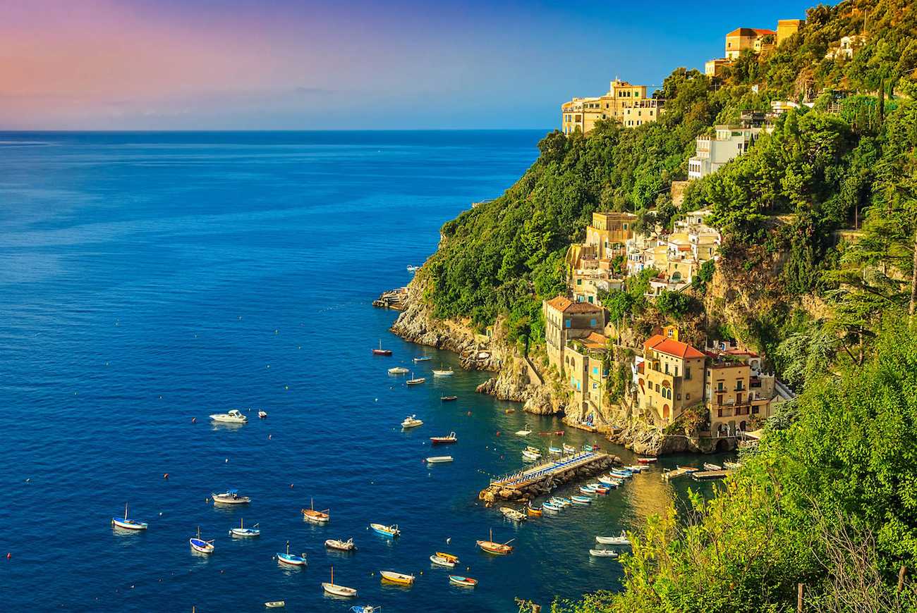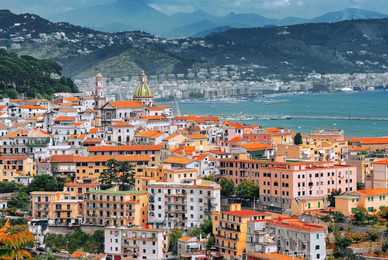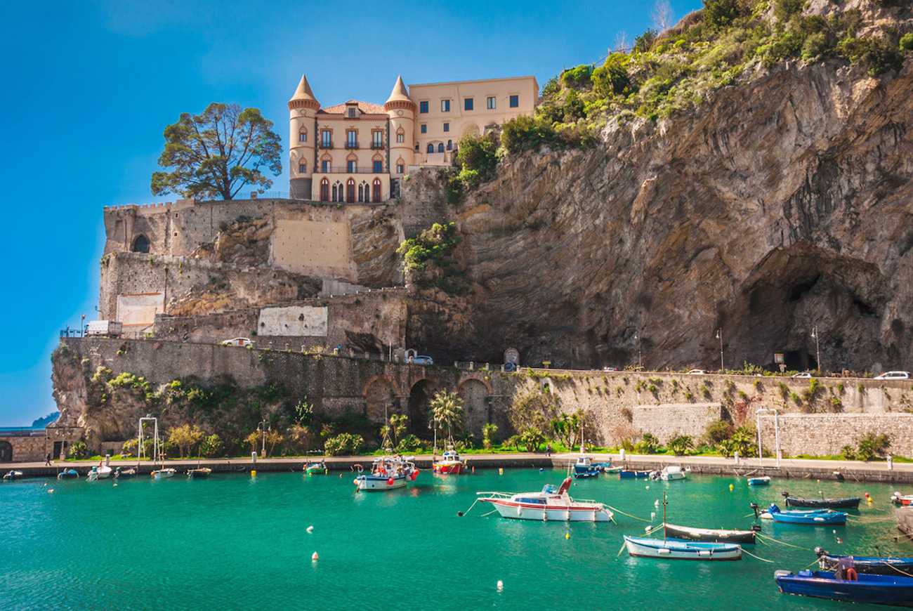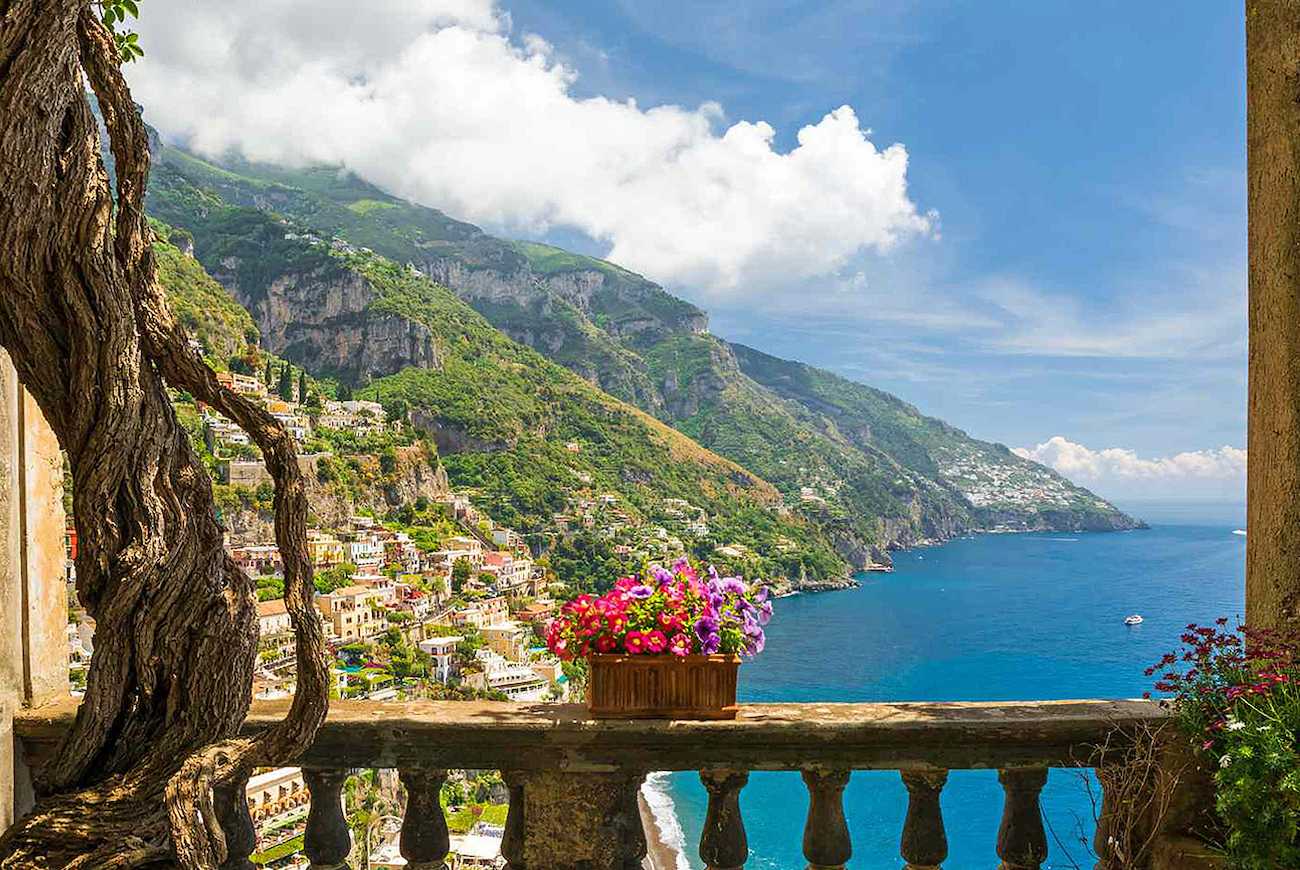 The Amalfi Coast is a stretch of coastline, about 40 km (25 mi) of winding road, overlooking the Tyrrhenian Sea and the Gulf of Salerno. It’s named after the town of Amalfi, which makes up its main historical and political center. The two extreme cities are Vietri sul Mare and Positano. With its spectacular landscapes and idyllic climate it has been a tourist destination since Roman times. Jagged cliffs, adorned with pastel-colored fishing villages, plunge dramatically towards crystalline turquoise waters, lapping at the shores of hidden coves. Breathtaking historic houses cling precariously to the cliff sides, while the surrounding mountains are terraced with verdant vineyards and fragrant lemon groves – the source of some of Italy's finest limoncello.
