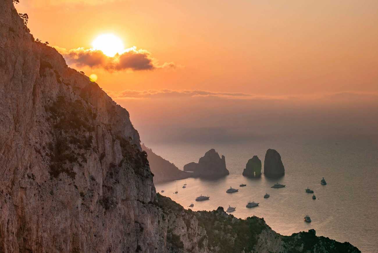 The island of Capri is a gem radiating a brilliant history through the centuries. There are innumerable points of interest that are witnesses to an enchanted past. Starting with some ancient Roman archaeological finds, like the Villa Jovis, built by the Emperor Tiberius, followed by the Certosa (Basilica) di San Giacomo which houses a museum where it is possible to admire two statues that were recovered from the deep Grotta Azzurra (Blue Grotto). Beyond the cultural attractions, Capri is an island that offers a landscape of wild beauty sculpted by wind, sea and the hand of man.