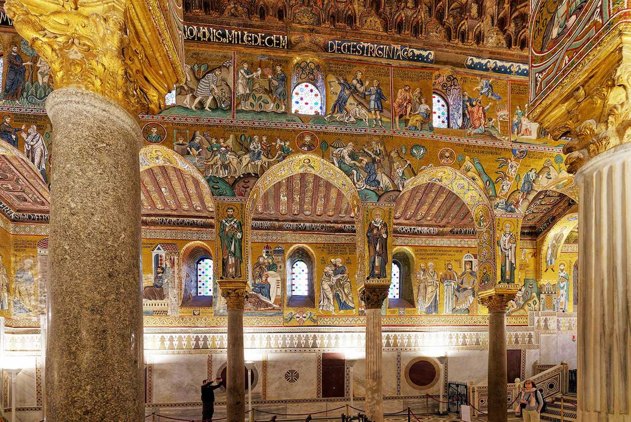 This style is characterized by the union of two opposing worlds: the Arab - Muslim and the Norman - Catholic one. After two and a half centuries of Arab domination, Palermo became one of the richest and most important cities of its time and many palaces, mosques, minarets, gardens and fountains were built. Unfortunately today there is no relevant monument belonging to the Muslim era because, with the arrival of the Normans, the buildings were modified making it impossible to distinguish their ancient function. Despite this, the Normans decided to emulate the great splendor of the Arabs and recognized the remarkable skill of the Muslim workers: from this union, the Arab-Norman style was born. The Arab-Norman itinerary, declared a “World Heritage Site” by Unesco, includes nine religious and civic structures: two palaces, three churches, a cathedral, and a bridge in Palermo, as well as the cathedrals and Cloisters of Cefalù and Monreale.
