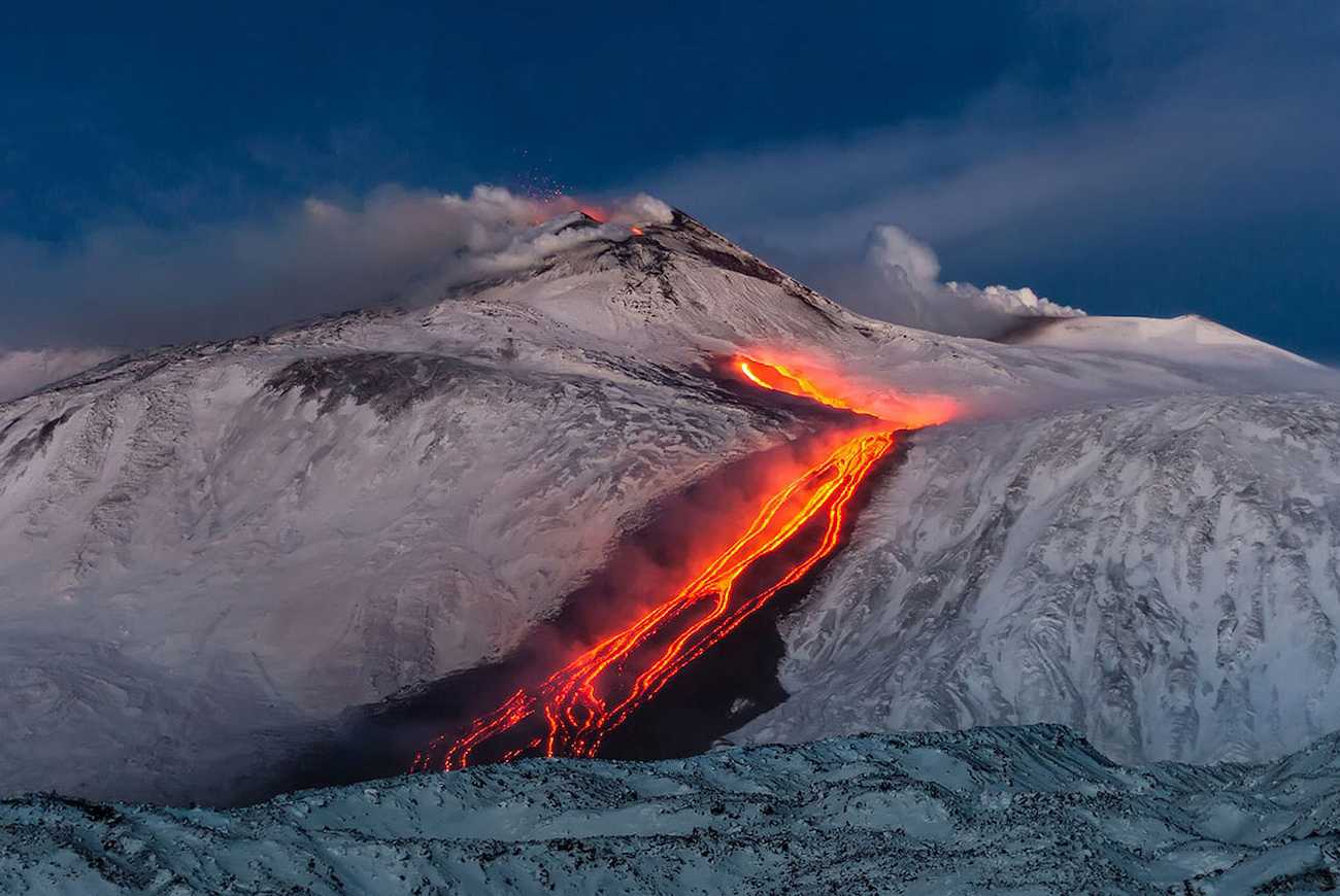 Mount Etna is the tallest active volcano in Europe and one of the most active in the world, with a history of eruptions dating back 3,500 years. Writers have called it the Wicked Witch, the Pillar of Heaven and many locals call the volcano Mongibello, the beautiful mountain, in spite of its dangers. The highest active volcano in Europe, Mt. Etna has attracted the attention of travelers, artists, poets and philosophers for centuries. Etna’s frequent eruptions throughout history have changed, sometimes profoundly, the surrounding landscape, at times threatening the people who have settled around it. The first historical references to the activity of the Etna eruption are found in the writings of Thucydides and Diodorus of Sicily and of the poet Pindar. According to Diodorus, about 3,000 years ago following a phase of violent explosive activity, the inhabitants of the area near Etna moved to the western parts of the island. Although Etna’s lava flows and dust clouds bring destruction, they also enrich the soil, making the lower slopes and surrounding plains some of the most fertile regions in Sicily, with vast expanses of vines and citrus groves. Etna’s surface is characterized by a variety of landscapes, including dense forests and desolate areas covered by magmatic rock. The volcano’s weather can change quickly and, when snow-capped, Etna attracts skiers.