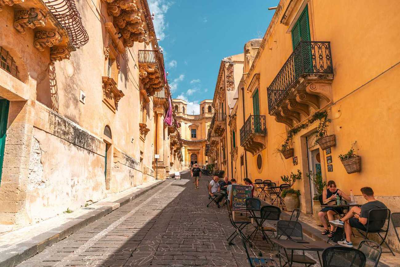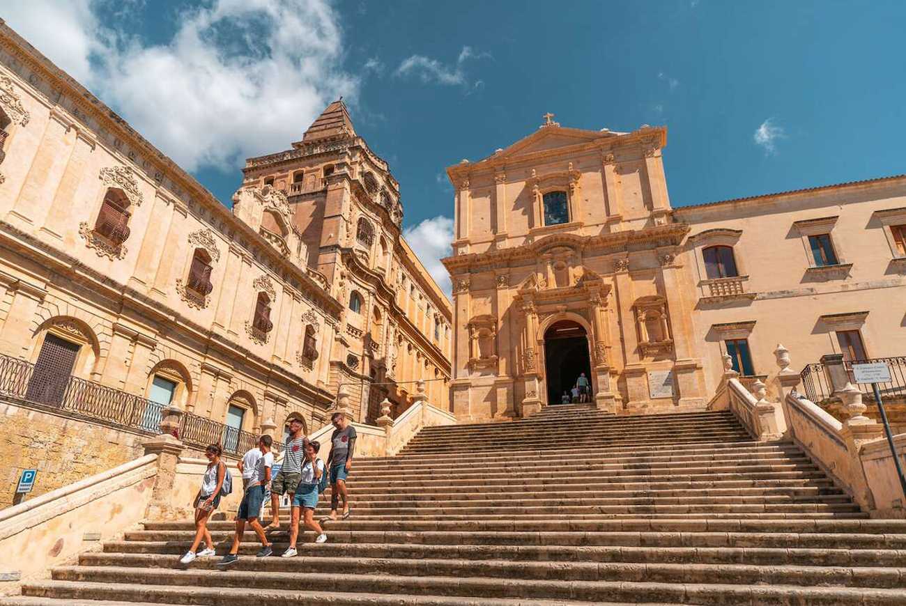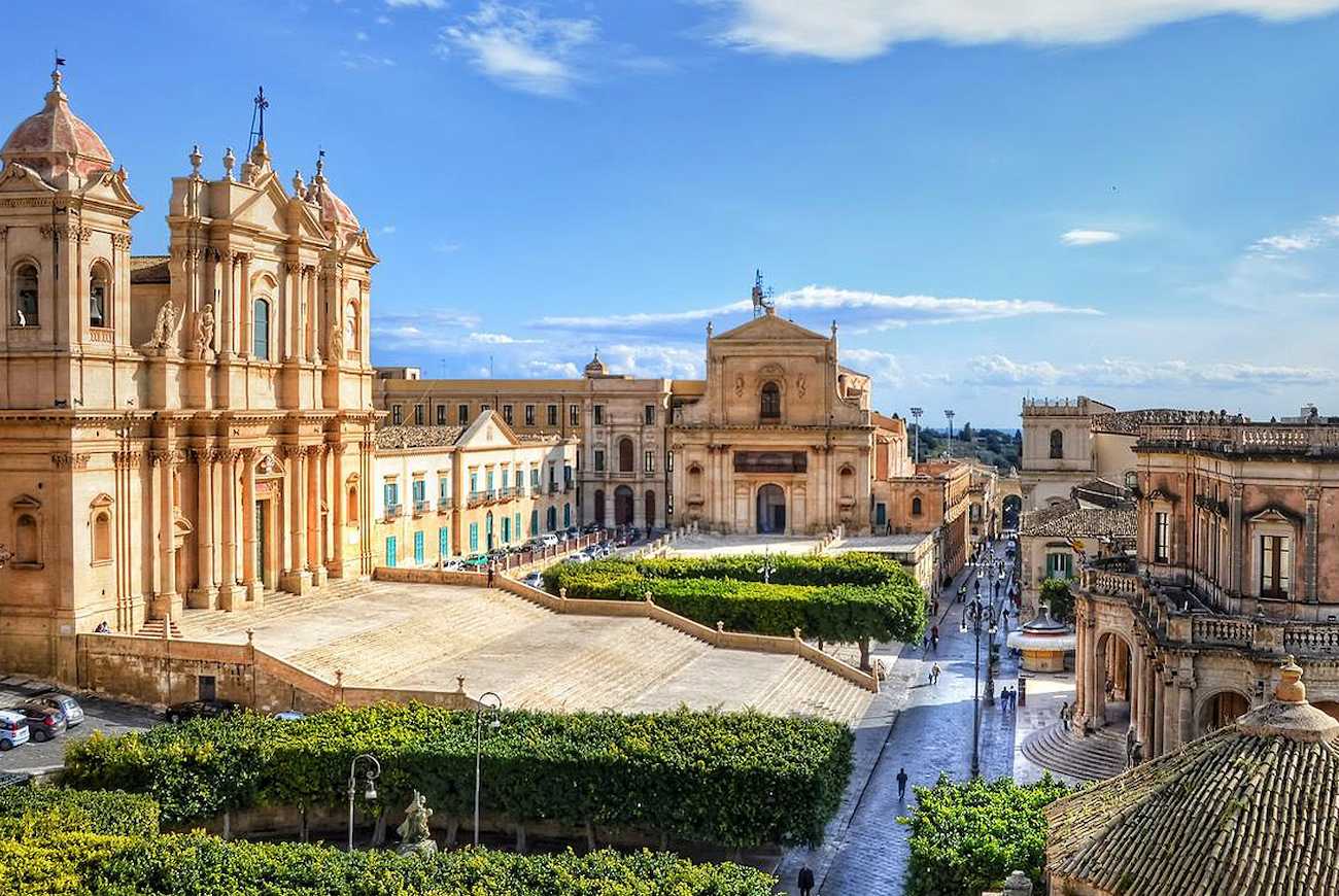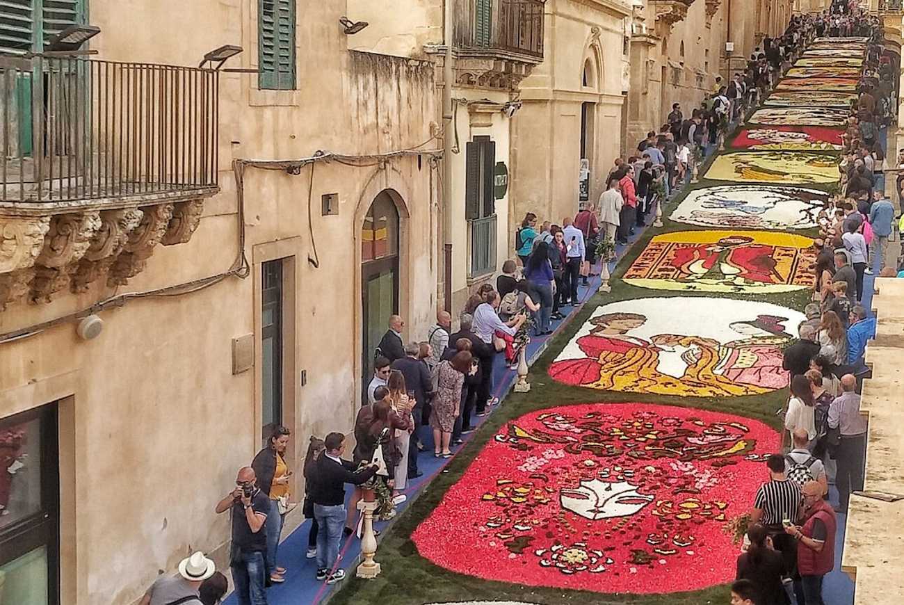 In ancient times Noto was known as Netum and, according to legend, Daedalus stayed in the city after his flight over the Ionian Sea, as did Hercules when he completed his seventh task. After Roman domination, it was conquered and ruled by Arabs until 1091, when it became the last Islamic citadel in Sicily to fall to the Christians. Later it became a rich Norman city, expanding itself with new buildings, churches and palaces. Noto was totally destroyed during the 1693 earthquake and to rebuild the city and relocate it closer to the Ionian Sea, famous architects were hired to plan a new Noto. The new city seems to be made of gold thanks to a local limestone whose golden hues light up at sunset. This Sicilian town is also renowned for its Infiorata, a floral festival meaning "decorated with flowers." Held annually over the third weekend of May, the Infiorata transforms Via Nicolaci, one of Noto's charming streets, into a vibrant work of art. Local and international artists collaborate on a chosen theme, meticulously crafting a kaleidoscopic carpet of petal mosaics using specially cultivated flowers.
