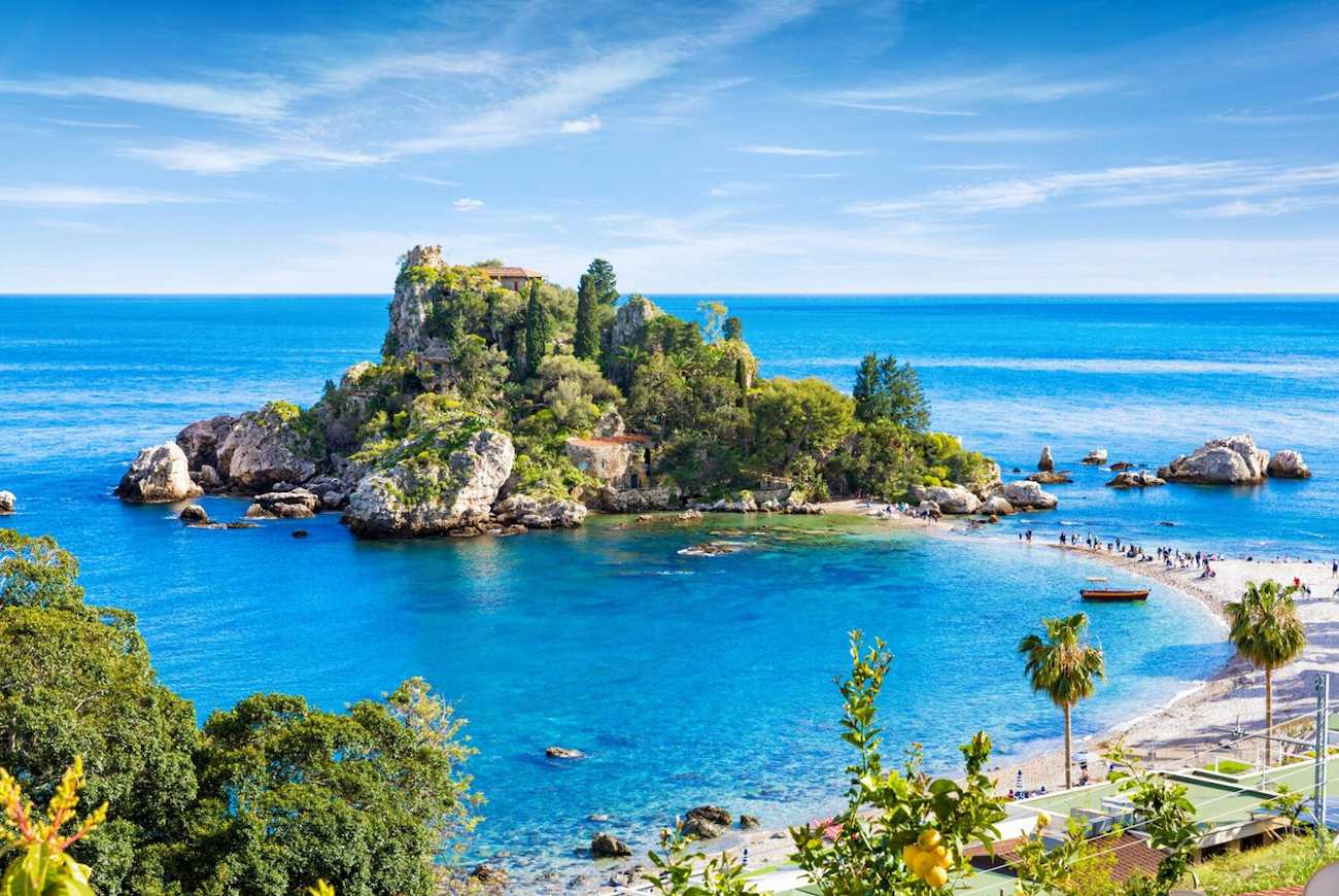 Taormina (from latin Tauromenium), built on Monte Tauro, was founded by Andromacus in 392 BC and dominates two beautiful bays below and on the southern side, the top of Mount Etna. It has a magical, mythical atmosphere which has attracted visitors since 212 BC when the Romans conquered it and became a favorite holiday spot for Patricians and Senators, thus starting Taormina’s long history as a tourist resort. Then came the Byzantines, Saracens, Arabs, Normans, Spaniards and French, all of whom chose it as their residential site. Taormina retains its allure, captivating tourists worldwide. From bustling Corso Umberto, the pedestrian heart that winds between Porta Messina and Porta Catania, a labyrinth of charming alleys unfolds. Gorgeous medieval buildings line these orange-fragranced streets, a haven that once inspired artistic giants like Alexander Dumas, Gustav Klimt, and Oscar Wilde. Adding to its cultural legacy, the ancient Teatro Greco-Romano still stands, a testament to the town's rich history and a vibrant venue even today.