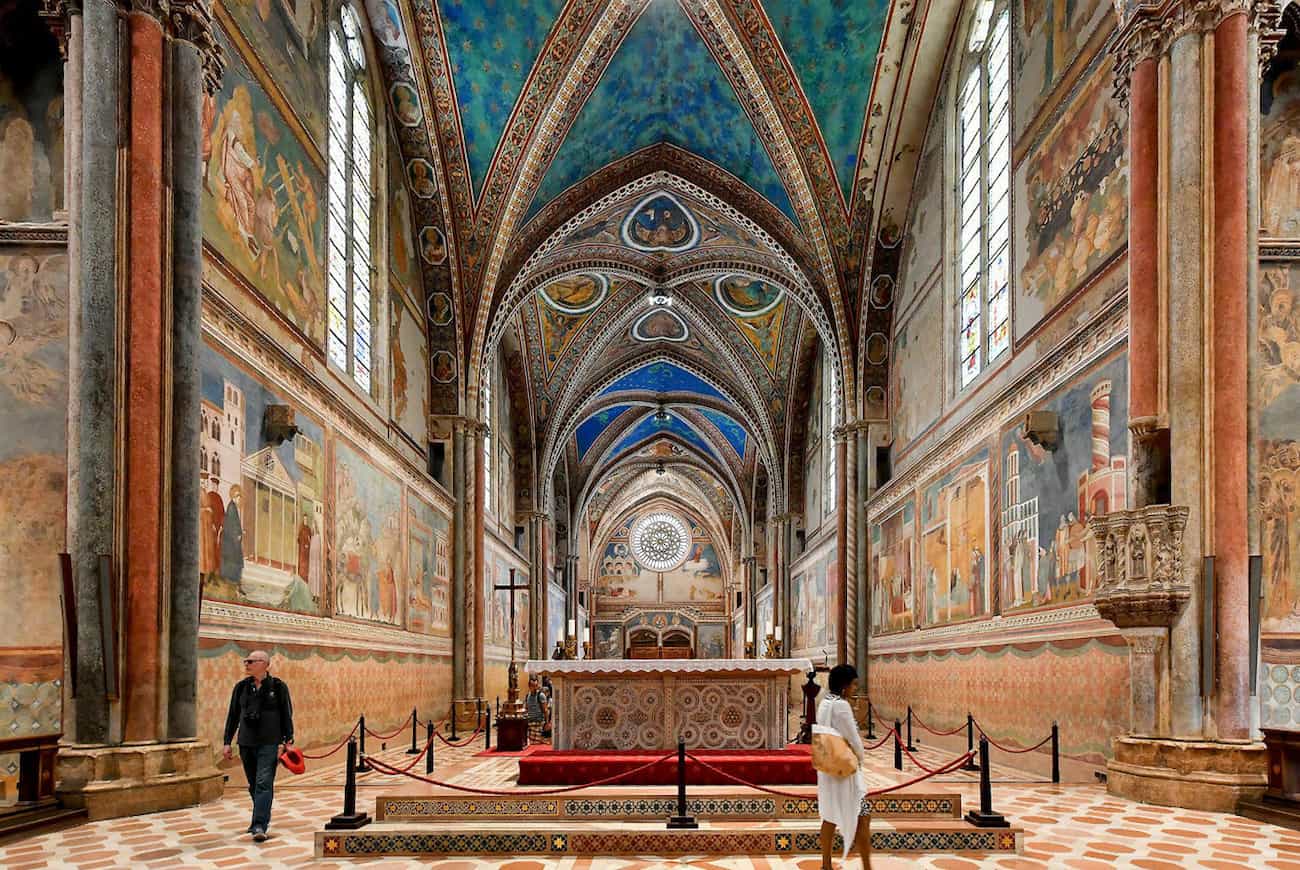 The city’s most notable landmark is the Basilica of Saint Francis. Its construction began in 1228, just two years after the saint’s death, and was completed in 1253. The two-story basilica consists of the upper church and the lower one that contains the crypt where St. Francis is buried. The basilica is one of the largest repositories of early Renaissance frescoes in Italy. The upper church has frescoes depicting episodes from the life of Saint Francis by Giotto, and other frescoes depicting scenes from the Old and New Testaments by Cimabue and Jacopo Torriti. The earthquake of September 26, 1997 severely damaged the basilica, collapsing several vaults of the upper church and destroying frescoes by Cimabue and others.