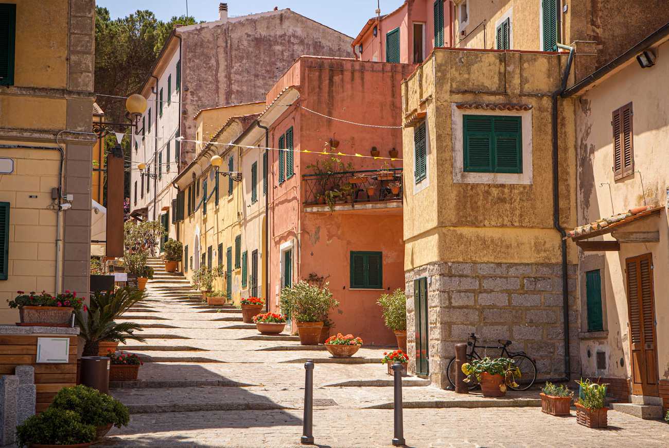 Marciana Marina by territorial extension, which is limited to the historic center, is the smallest of the 8 municipalities of the island and the third smallest in Italy. Until 1884 the town was part of Marciana, located at the foot of Monte Capanne, and was an important seaport inhabited mainly by fishermen and where boats were built and repaired using wood obtained from chestnut groves. Despite its small size, it enjoys a certain command over Elba’s trade routes, and has been nicknamed the “Little Marseille”. Although in recent years, there has been an increase in tourist-building development, the city has been able to preserve the original architectural and urban features of the 19th century. The historic center, called Cotone or Borgo del Cotone, with its narrow granite streets that intersect along pastel-colored houses looking out onto the sea, make Marciana Marina one of the most picturesque and evocative villages of the whole island.