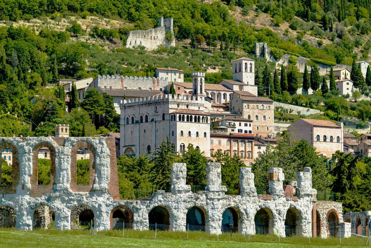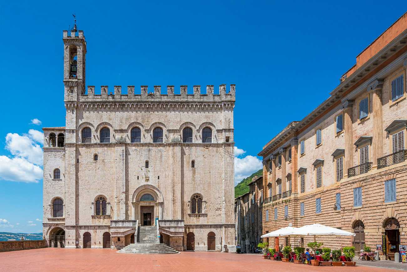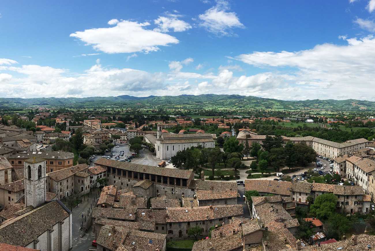 The origins of the city of Gubbio are lost in remote times. Its roots lie in the ancient Umbrian civilization, evidenced by the Eugubine Tablets, written in the Umbrian language and dating back to the 4th century BC. Founded in the 3rd century BC as Tota Ikuvina, Gubbio assumed greater prominence in the 1st century AD as the Roman town Iguvium. Turbulent years began with the fall of the Roman Empire, first with the sack of the Goths in 552, then with the arrival of the Byzantines 40 years later, until the Lombard invasion 200 years later. The 12th century is one of its richest periods until the end of the 14th century, after which Gubbio entered a long period of slow decline, ending only with the unification of Italy in 1860. Gubbio has a busy calendar of events during the year, such as the Middle Ages Festival, the Truffle Exhibition and the setting up of the largest Christmas tree in the world. But the most important is the race of the Ceri (candles), one of the oldest folklore events in Italy that takes place every year since the 12th century. The 3 Ceri are represented by three gigantic wooden structures surmounted respectively by the statues of the 3 patron saints. Fixed on stretchers, the candles are carried on the shoulders of the ceraioli, who, running through the streets of the city, reach the Basilica of Sant’Ubaldo at the top of Mount Ingino. Since 1973 the candles have become the symbol of the Umbria Region.