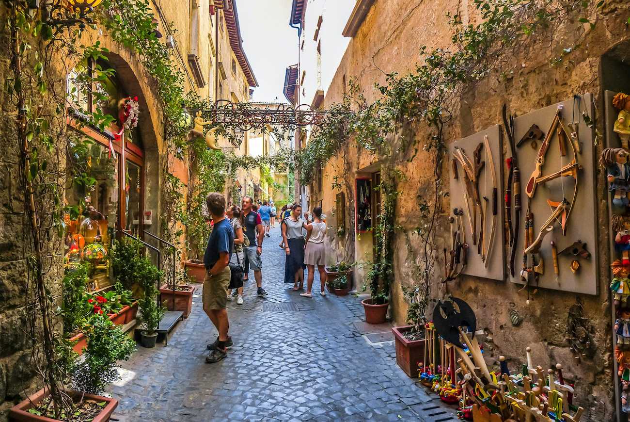 Orvieto is a small city perched on the flat summit of a large butte of volcanic tuff. It rises dramatically 150 m high (almost 500 ft) with defensive walls built of the same stone. The origins of Orvieto date back to the 9th century BC. as evidenced by the traces found of the Villanovan community (early Iron Age), the ancestors of the Etruscans. Today in the underground city it is still possible to see an intricate network of caves, grottoes and numerous wells that date back to Etruscan times. With the arrival of the Romans, Urbs Vetus (old city), which is the origin of the current name of Orvieto, was annexed to the Empire in the 3rd century BC. With the fall of the Roman Empire began a turbulent period characterized first by the arrival of the barbarians and then by the invasion of the Lombards. The Middle Ages mark an important moment for the city, a period of great wealth, beauty and expansion, which reached its peak between the 13th and 14th centuries and its very particular urban structure has remained substantially unchanged since then. Once again, as often happens in Italian cities, including Orvieto, the greatest expression of the art of this period and of the Renaissance is its marvelous cathedral. Its imposing size can be enjoyed from the terrace at the top of the Torre del Moro.