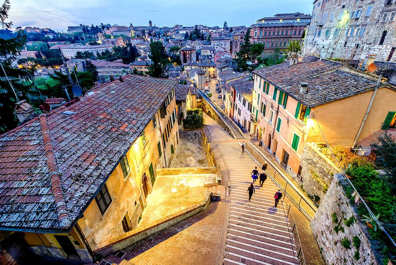 Capital of the Umbria region, Perugia boasts a thriving international student scene thanks to its two universities – the University of Perugia founded in 1308 and the University for Foreigners, the oldest of its kind in Italy – and is famous for its international events such as Umbria Jazz, which attracts tourists from all over the world. Encircled by Etruscan walls, the city has preserved its medieval churches, winding cobblestone streets, and an impressive Renaissance and Baroque architecture. Perugia was the hub of the great Renaissance Umbrian school of painting, which reached its height in the 15th century. In the center of the city the magnificent Piazza Quattro Novembre, a former Roman forum, contains the gothic Palazzo dei Priori (1293–1297) housing the National Gallery of Umbria’s remarkable collection of paintings and sculpture; the cathedral of San Lorenzo (1345–1430) and the splendid Fontana Maggiore, built between 1275 and 1278 by Nicola and Giovanni Pisano, a precious symbol of a lively and magnificent medieval Perugia. Other landmarks include the Rocca Paolina, a fortress symbol of papal authority (XVI century), and the Collegio del Cambio (1452–57), with frescoes by Pietro Perugino. Particularly notable among the many fine churches are San Angelo (5th and 6th centuries; on a circular plan); San Domenico (1305; rebuilt 1632) and San Severo, with a fresco by Raphael. The Perugia Aqueduct is one of the most particular attractions of the town. It is a rather complex hydraulic engineering work - started in Roman times and finished in the Middle Ages - because it transported water to a city full of gradients without using any pump. Decommissioned in the mid-1800s, today it offers one of the most beautiful and picturesque promenades in Italy.
