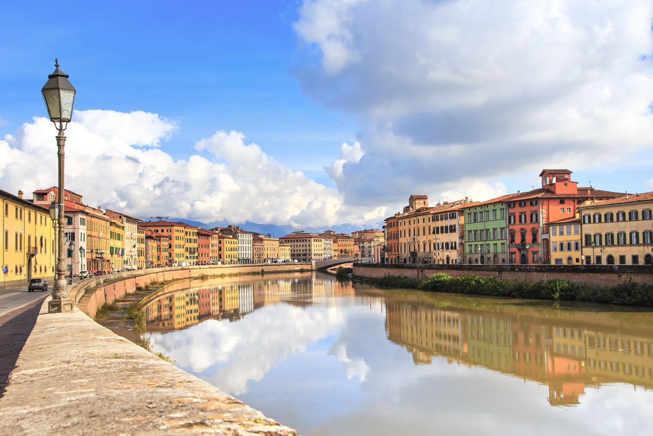 Pisa’s rich history extends far beyond its most famous landmark, the Leaning Tower. The city contains churches, several Renaissance palaces, museums, lovely public parks, and bridges across the Arno, the river that also flows through Florence. In the early Middle Ages, Pisa thrived as one of Italy’s four major Maritime Republics along with Venice, Amalfi, and Genoa, and becoming dominant from a military and commercial standpoint it was able to finance the construction of important buildings that have made it today a top tourist destination: the Cathedral, the Baptistery and the Leaning Tower, all of them built with white marble. After the 15th century, due to the accumulation of silt deposited by the Arno, Pisa was cut off from the shoreline. The origins of Pisa are not clear but historians think that the ancient population of Ligurians or the Greeks founded it. Without a doubt, Pisa was occupied by the Etruscans and then became an important town of the Roman Empire. However, not many traces of that historical period are left to testify the presence of Rome apart from some sarcophagi and scattered ruins. Pisa fought against Muslim raiders and participated in the crusades which allowed it to establish new trade routes increasing its power over the other maritime republics. Pisa is also known by its predominantly cultural role thanks to the presence of one of the oldest universities in Europe, founded in 1343 and where Galileo Galilei, a citizen of Pisa, was teaching.