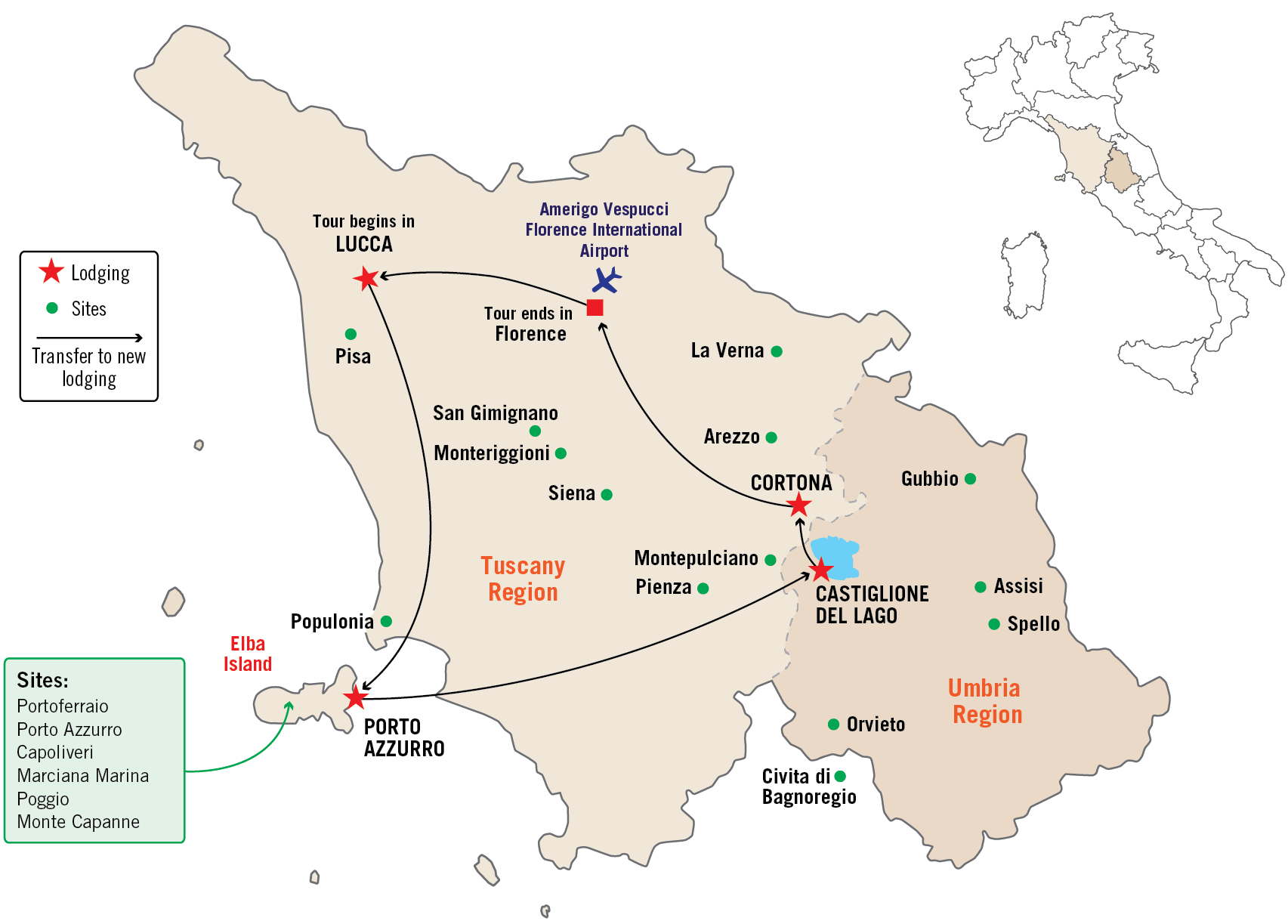The tour ends today with a ride to the Florence airport, or to your hotel in Florence if you are prolonging your visit in Italy. Today will be your last chance to exchange email addresses with your new friends!