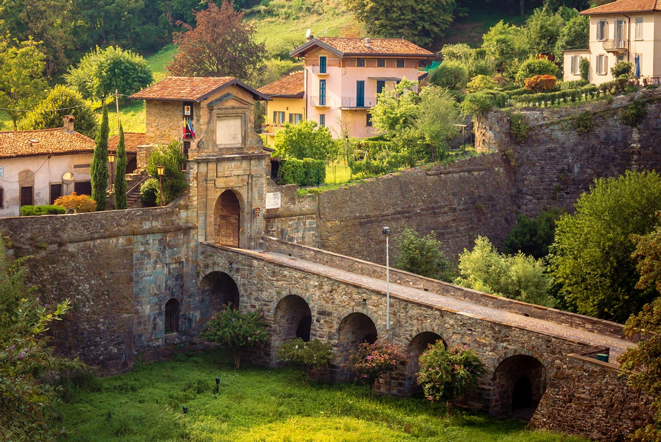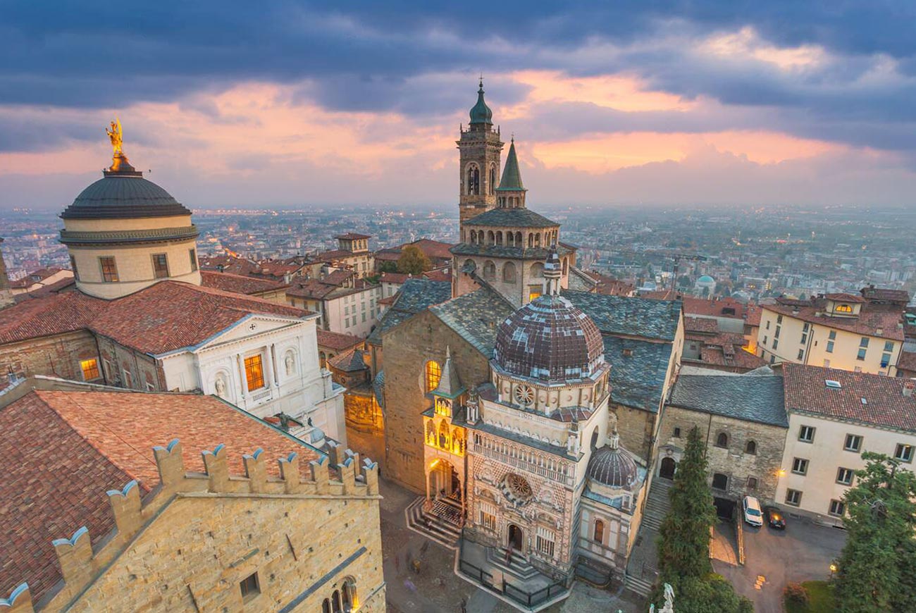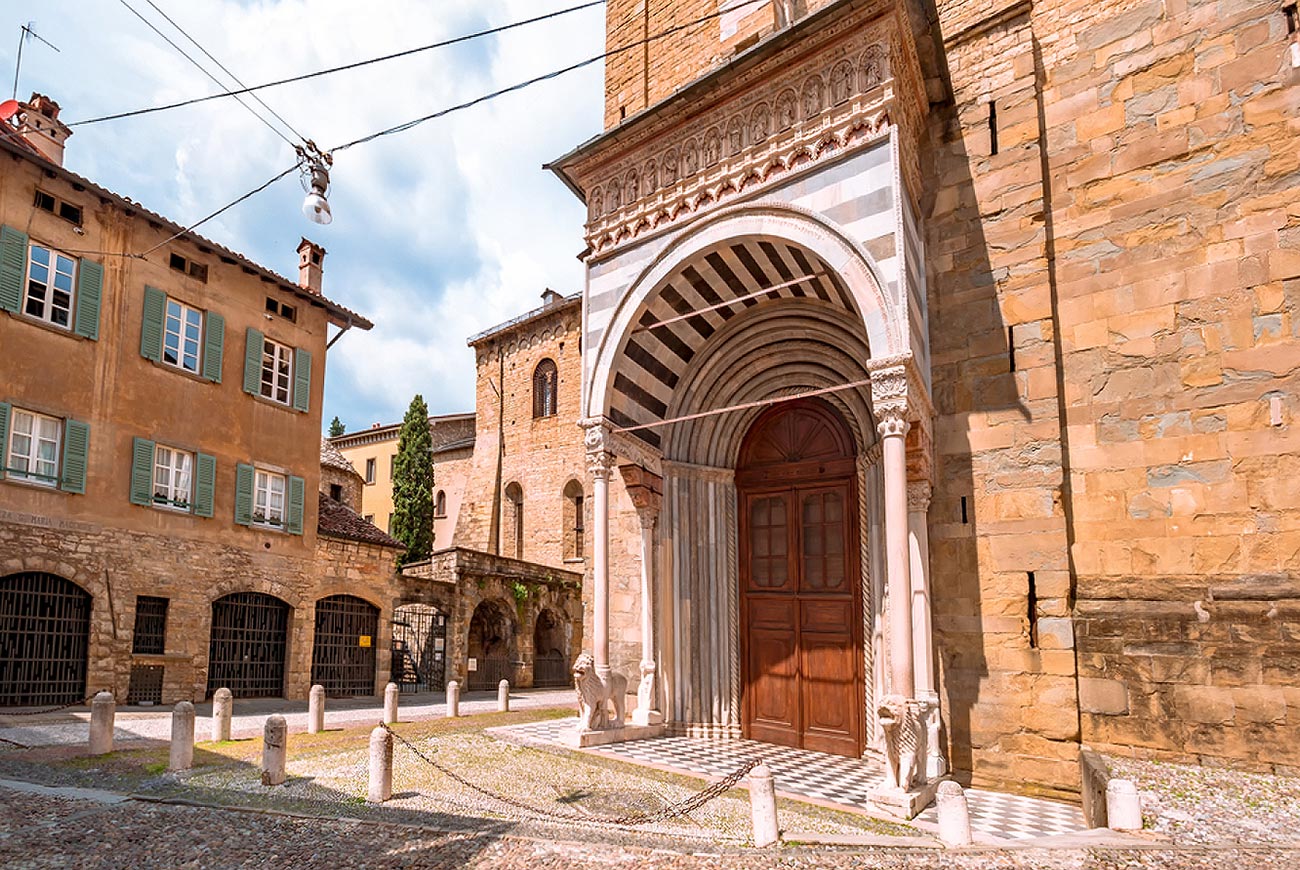 Bergamo is located 25 miles from Milan and is the second most visited city in Lombardy. It is divided into Città Alta, the upper town and historic center, and Città Bassa, the lower modern expansion of the city. In the 16th century, when the town was ruled by Venice, a massive defensive wall with towers, bastions and 4 gates was built all around Città Alta which in 2017 became a UNESCO World Heritage Site. The area where Bergamo stands now was initially an Orobi settlement during the Iron Age. Named Bergomum during Roman times, it was destroyed in the 5th century by Attila the Hun. After being rebuilt it was ruled by the Milanese Visconti family during the 12th century, then by Venice until 1797 when the town was controlled by the French. For 44 years it lived under Austrian rule until it became part of the Italian kingdom in 1859. Upper Bergamo, accessible also by funicular is a town of rare beauty. Once exited the funicular station, you are catapulted into an enchanting medieval atmosphere that can be felt walking through the narrow cobblestone streets and while visiting the historic buildings.