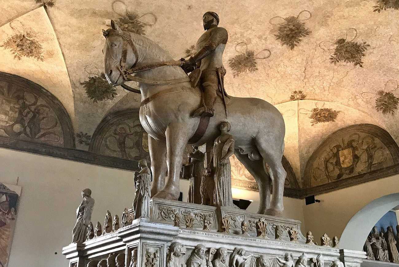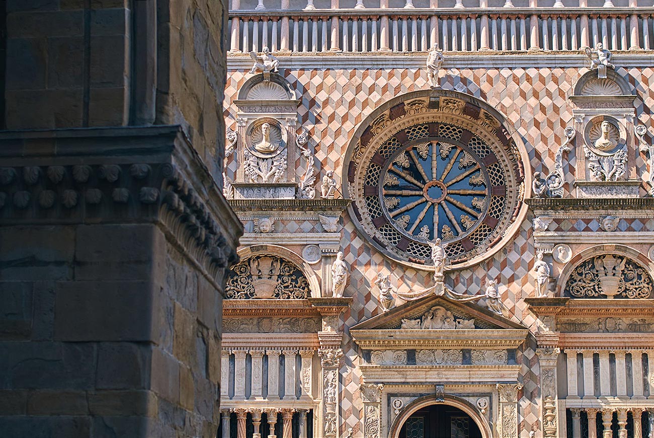 The Colleoni Chapel is surely the most beautiful building in Bergamo with ceiling frescoes by the Venetian painter Tiepolo in the 18th century. Its façade is decorated with red and white marble, an authentic Italian Renaissance masterpiece. It was built as the personal shrine for the condottiere Bartolomeo Colleoni, one of the most famous mercenary captains in Italy.