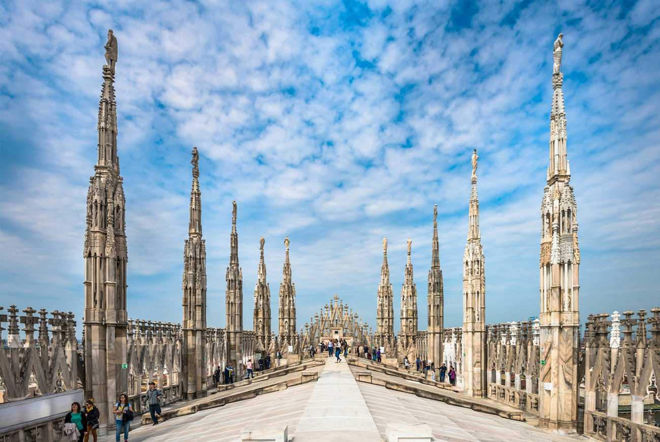 The most impressive building in Milan and one of the largest churches in the world. Nowhere else will you find a structure with 3,400 statues, weighing 325,000 tons! The Duomo’s 55 stained glass windows include over 3,600 characters; it also has 200 bas-reliefs, 96 gargoyles and 700 figures. The Duomo’s 135 marble slender spires give this monument its unique outline. On the rooftop you can fully appreciate the architecture and the breathtaking views over the city. The construction of the Duomo officially began in 1386 founded by Milan’s ruler Gian Galeazzo Visconti, founder of the Veneranda Fabbrica del Duomo di Milano, a 600-year-old organization that was established to supervise the construction of the Milan Cathedral. Today, it is still actively involved in the preservation of the building with a project that began in 2002. Routine restorations and cleaning are continually taking place to maintain its gleaming stone, making the Duomo the longest-worked cathedral in the world.
