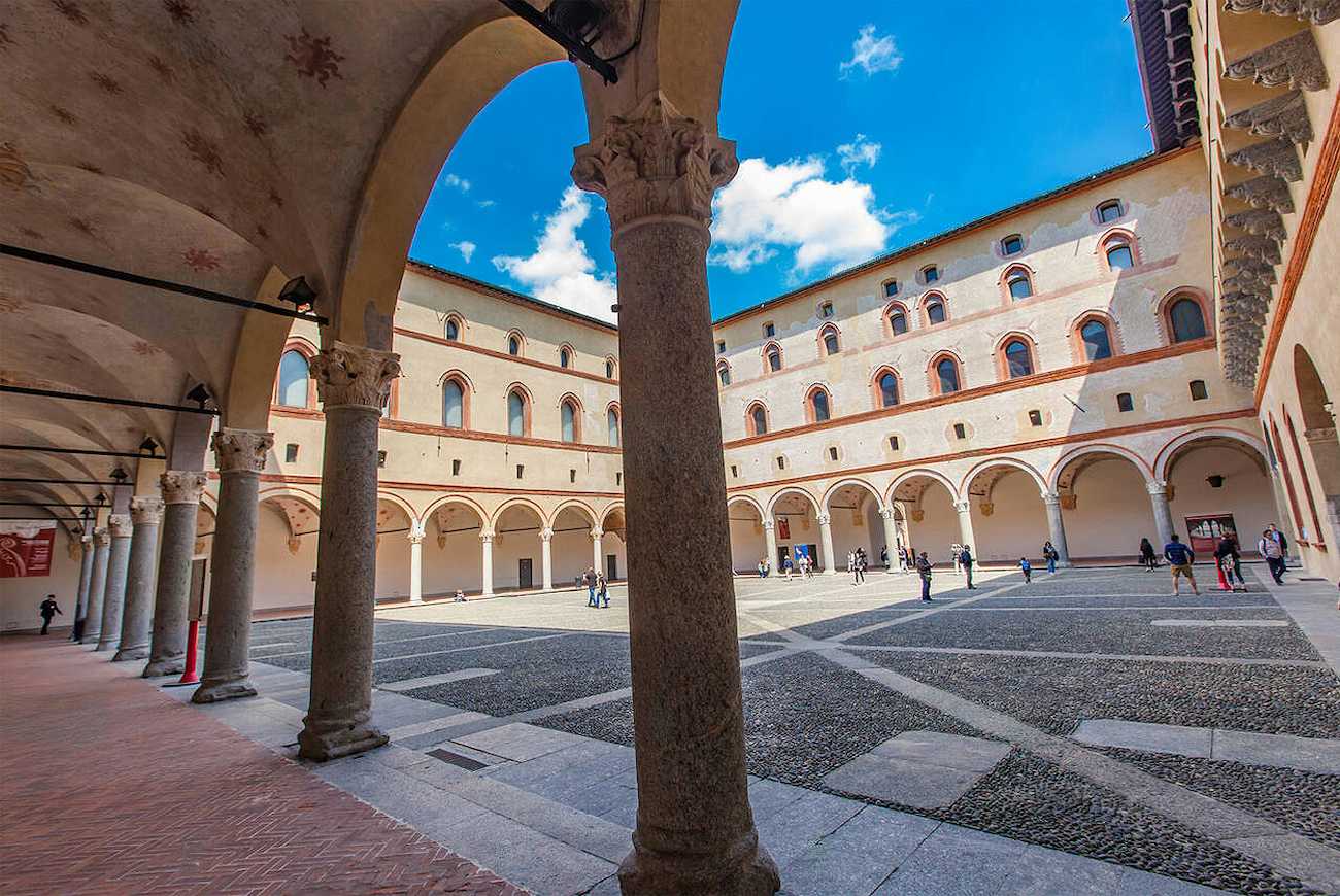 The Sforza Castle was built during the 14th century and today is one of the most astounding fortified structures in Italy and one of the largest in Europe. It has transformed over the course of several centuries by the will of the various noble families who have governed it or during its foreign dominations. After post World War II restoration, the castle was reborn as a cultural center and home of several museums and exhibitions such as the Egyptian museum, the Musical Instruments Museum and the Antique Furniture and Wooden Sculpture Museum. Its highlights are the Rondanini Pietà, the last and unfinished work by Michelangelo, and the ‘Sala delle Asse’ by Leonardo da Vinci, becoming dear to the hearts of the Milanese and as such, a symbol of the city.