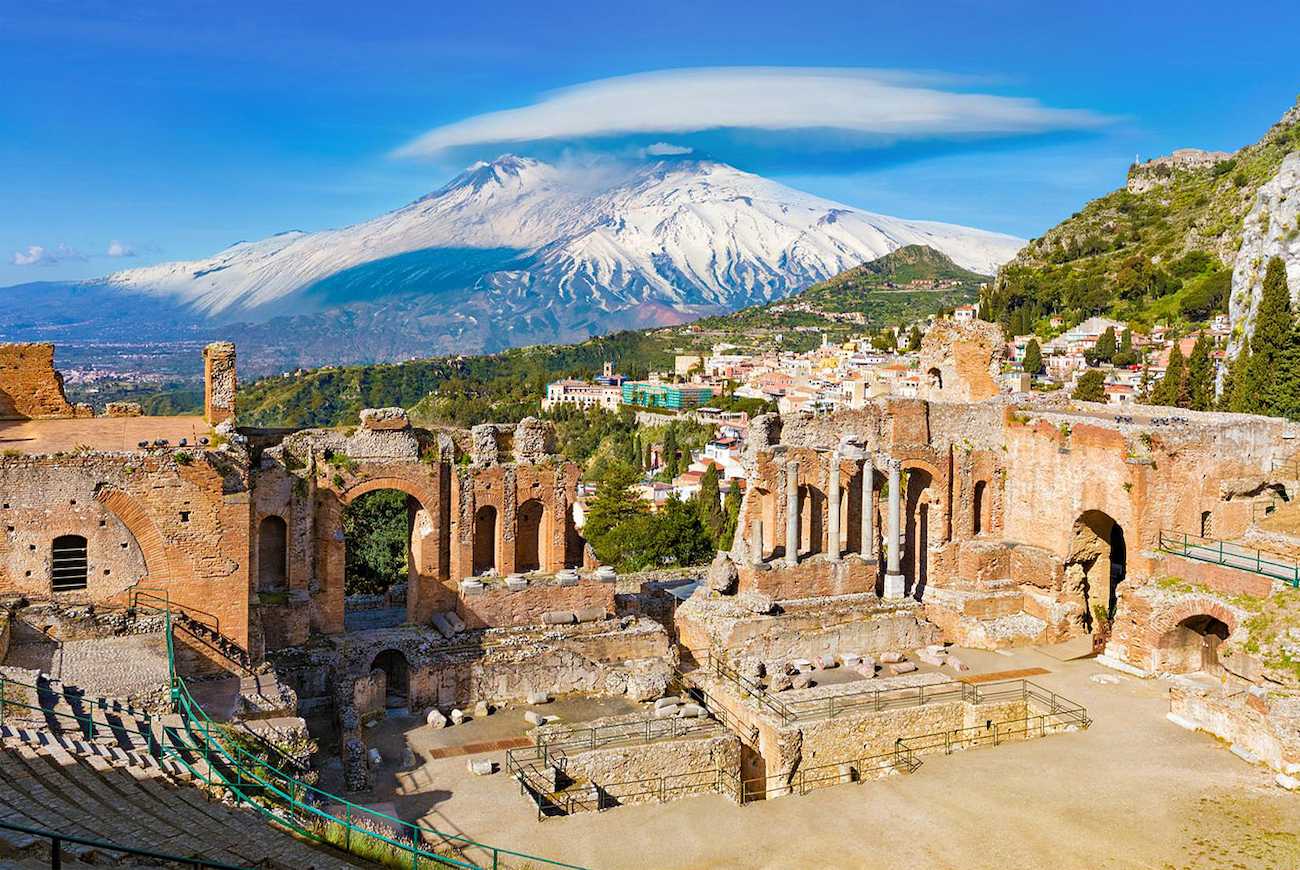 Taormina (from latin Tauromenium), built on Monte Tauro, was founded by Andromacus in 392 BC and dominates two beautiful bays below and on the southern side, the top of Mount Etna. It has a magical, mythical atmosphere which has attracted visitors since 212 BC when the Romans conquered it and became a favorite holiday spot for Patricians and Senators, thus starting Taormina’s long history as a tourist resort. Then came the Byzantines, Saracens, Arabs, Normans, Spaniards and French, all of whom chose it as their residential site. Taormina retains its allure, captivating tourists worldwide. From bustling Corso Umberto, the pedestrian heart that winds between Porta Messina and Porta Catania, a labyrinth of charming alleys unfolds. Gorgeous medieval buildings line these orange-fragranced streets, a haven that once inspired artistic giants like Alexander Dumas, Gustav Klimt, and Oscar Wilde. Adding to its cultural legacy, the ancient Teatro Greco-Romano still stands, a testament to the town's rich history and a vibrant venue even today.