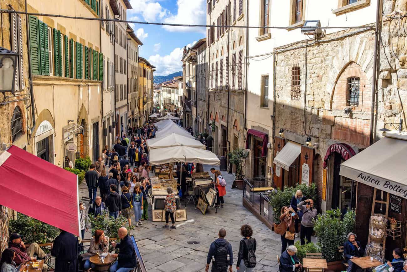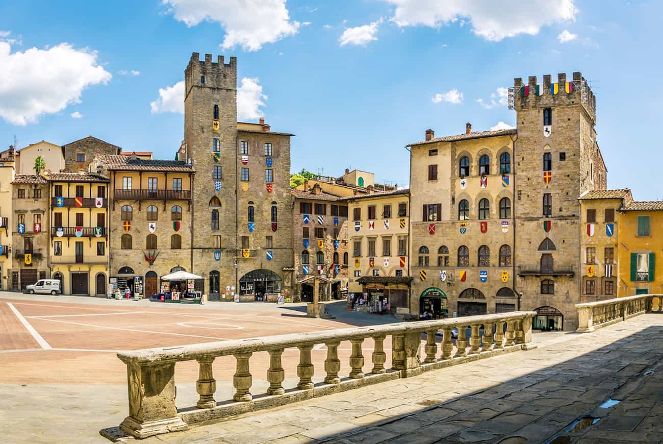 Arezzo is the Cinderella of Tuscany, unjustly overshadowed by the fame of Florence, Siena and Pisa. The beautiful historic center conveys the wealth it has gathered over the past centuries. Lying on a steep hill, which rises from the floodplain of the Arno, the river that crosses Florence and Pisa, Arezzo (Aritim in Etruscan), which was born around the 9th century BC, was one of the twelve most important Etruscan cities. Conquered by the Romans in 311 BC, due to its strategic position, it became a military station on the Via Cassia, the road through which Rome expanded in the North. After the Gothic war and the invasion of the Lombards at the end of the 6th century, only the amphitheater survived from the Roman period. Arezzo was home to important and great artists such as Petrarch, the pioneer poet of Renaissance literature and humanist thought; the painter Piero della Francesca whose masterpiece painting can be seen in the Church of San Francesco; Vasari, architect and painter and the painters Masaccio, Michelangelo and Luca Signorelli. Arezzo has a lot to offer; palaces, small alleys and quiet streets, archaeological sites, churches, monuments, museums and beautiful squares such as Piazza Grande where some scenes of the film Life is beautiful by Roberto Benigni were filmed. Arezzo hosts two major events, the medieval festival The Giostra del Saracino, held twice during summer, and the largest Antiques Fair in Italy, held on the first weekend of each month.