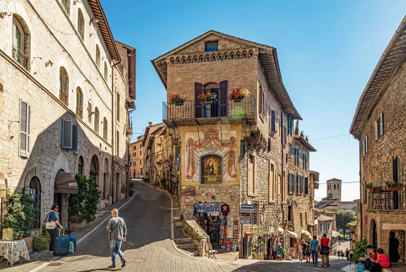 Spello history begins similarly to that of Assisi with the Umbrians forming the first settlements. From the 1st century BC, with the advent of the Romans, Spello, then called Hispellum, became an important city. In fact, the testimonies of that period are evident and impressive and coexist beautifully with today’s medieval urban appearance. There are six Roman gates, of these, Porta Consolare is the most imposing and Porta Venere, with the two Properzio Towers is the most characteristic. There are several churches, all quite plain from the outside but visually stunning on the inside, like the Baglioni Chapel with its magnificent Pinturicchio frescoes. Spello, which is all uphill or all downhill, depending on your point of view, is a jewel with its narrow cobbled streets, quaint little houses built in limestone and stunning views of the Umbrian countryside landscape.