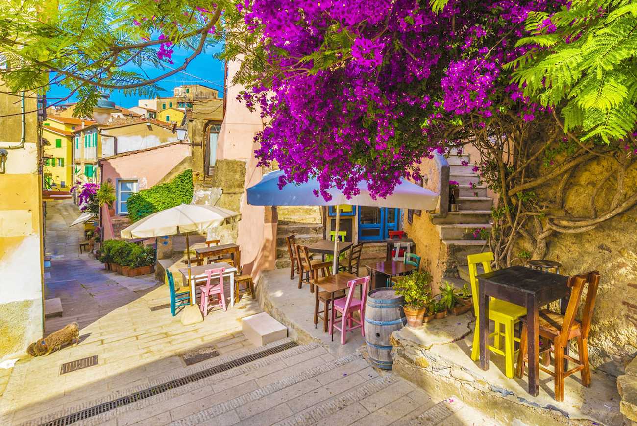 Porto Longone was founded in 1603 by King Philip III of Spain who wanted to make it into a fortified town to defend its territory. The charming seaside town grew up at the foot of the Forte di Longone, also known as Forte San Giacomo (St. James Fort), which was used as a prison at the end of the 18th century. In 1947 during the tourism boom, the name was changed to Porto Azzurro, to create a new image, away from its old associations with the penitentiary and reflecting more the surrounding landscape. Another important testimony of Spanish rule is the Sanctuary of the Madonna di Monserrato built in 1606 not far from the city and immersed in the green and fragrant nature of the island. Porto Azzurro is located on the western coast of Elba Island, has narrow streets with small houses, boutique shops, excellent restaurants and a town square in front of the marina with a tile floor design that resembles a fishing net to pay homage to the fishermen. The coastline around Porto Azzurro boasts unique beaches of natural beauty with their dramatic rock formations and white sand.