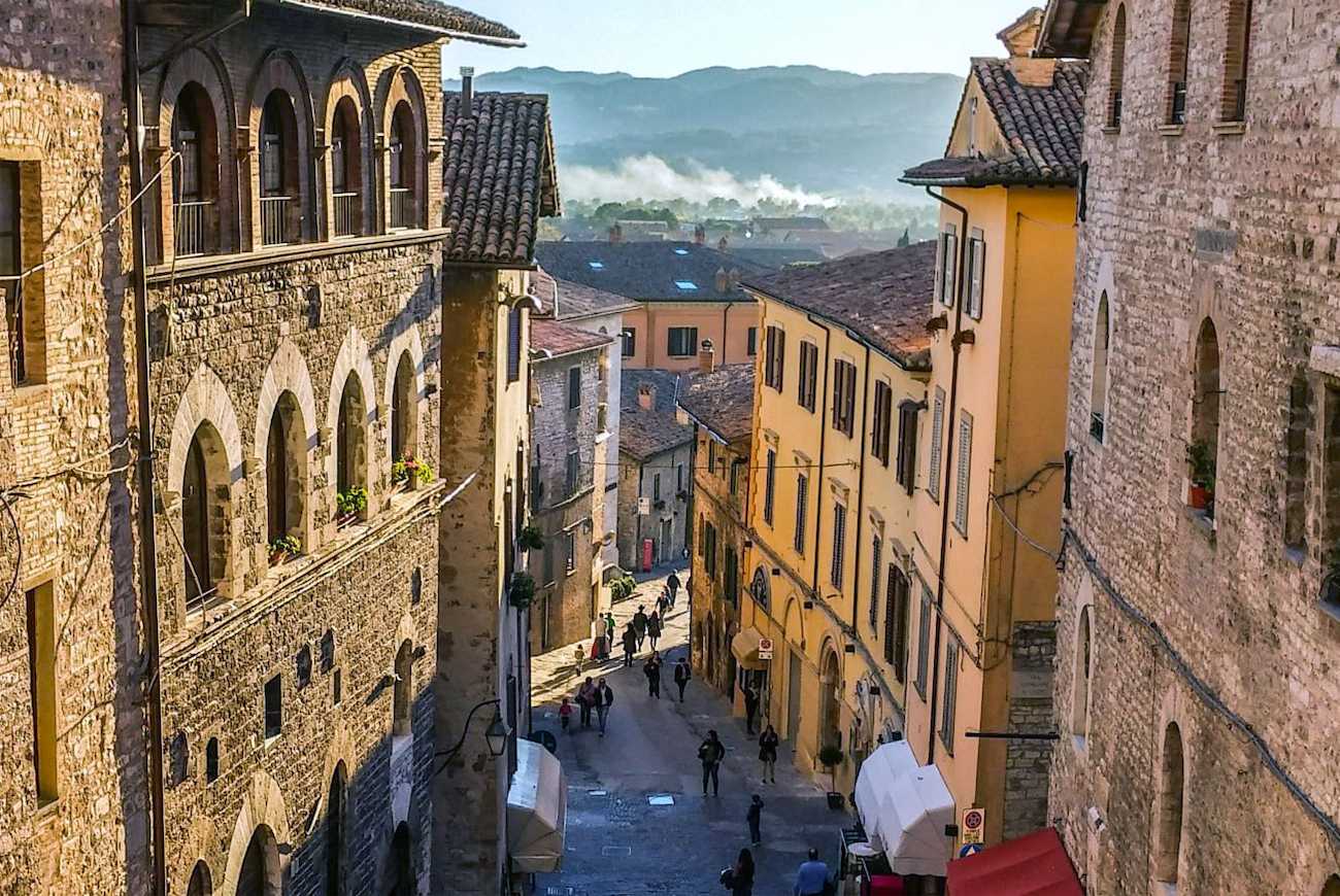 The origins of the city of Gubbio are lost in remote times. Its roots lie in the ancient Umbrian civilization, evidenced by the Eugubine Tablets, written in the Umbrian language and dating back to the 4th century BC. Founded in the 3rd century BC as Tota Ikuvina, Gubbio assumed greater prominence in the 1st century AD as the Roman town Iguvium. Turbulent years began with the fall of the Roman Empire, first with the sack of the Goths in 552, then with the arrival of the Byzantines 40 years later, until the Lombard invasion 200 years later. The 12th century is one of its richest periods until the end of the 14th century, after which Gubbio entered a long period of slow decline, ending only with the unification of Italy in 1860. Gubbio has a busy calendar of events during the year, such as the Middle Ages Festival, the Truffle Exhibition and the setting up of the largest Christmas tree in the world. But the most important is the race of the Ceri (candles), one of the oldest folklore events in Italy that takes place every year since the 12th century. The 3 Ceri are represented by three gigantic wooden structures surmounted respectively by the statues of the 3 patron saints. Fixed on stretchers, the candles are carried on the shoulders of the ceraioli, who, running through the streets of the city, reach the Basilica of Sant’Ubaldo at the top of Mount Ingino. Since 1973 the candles have become the symbol of the Umbria Region.