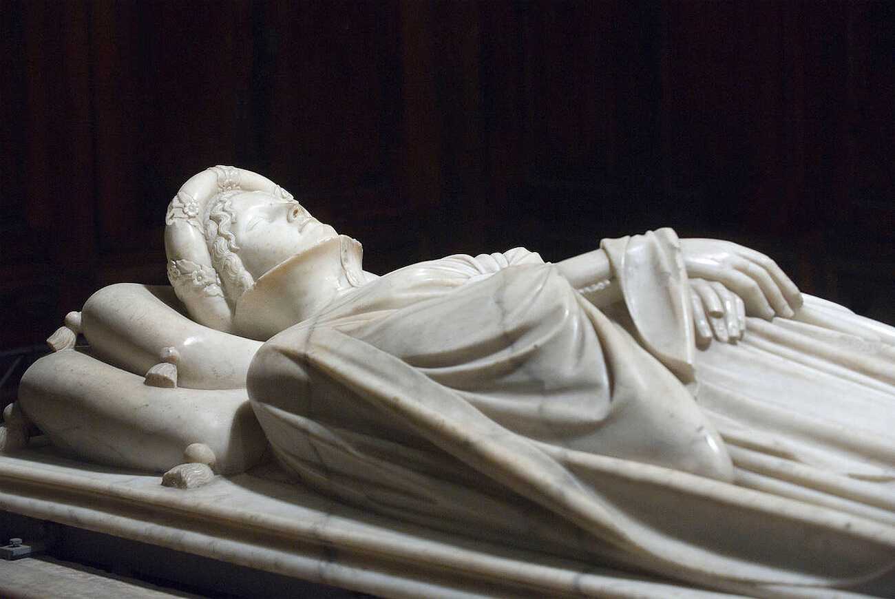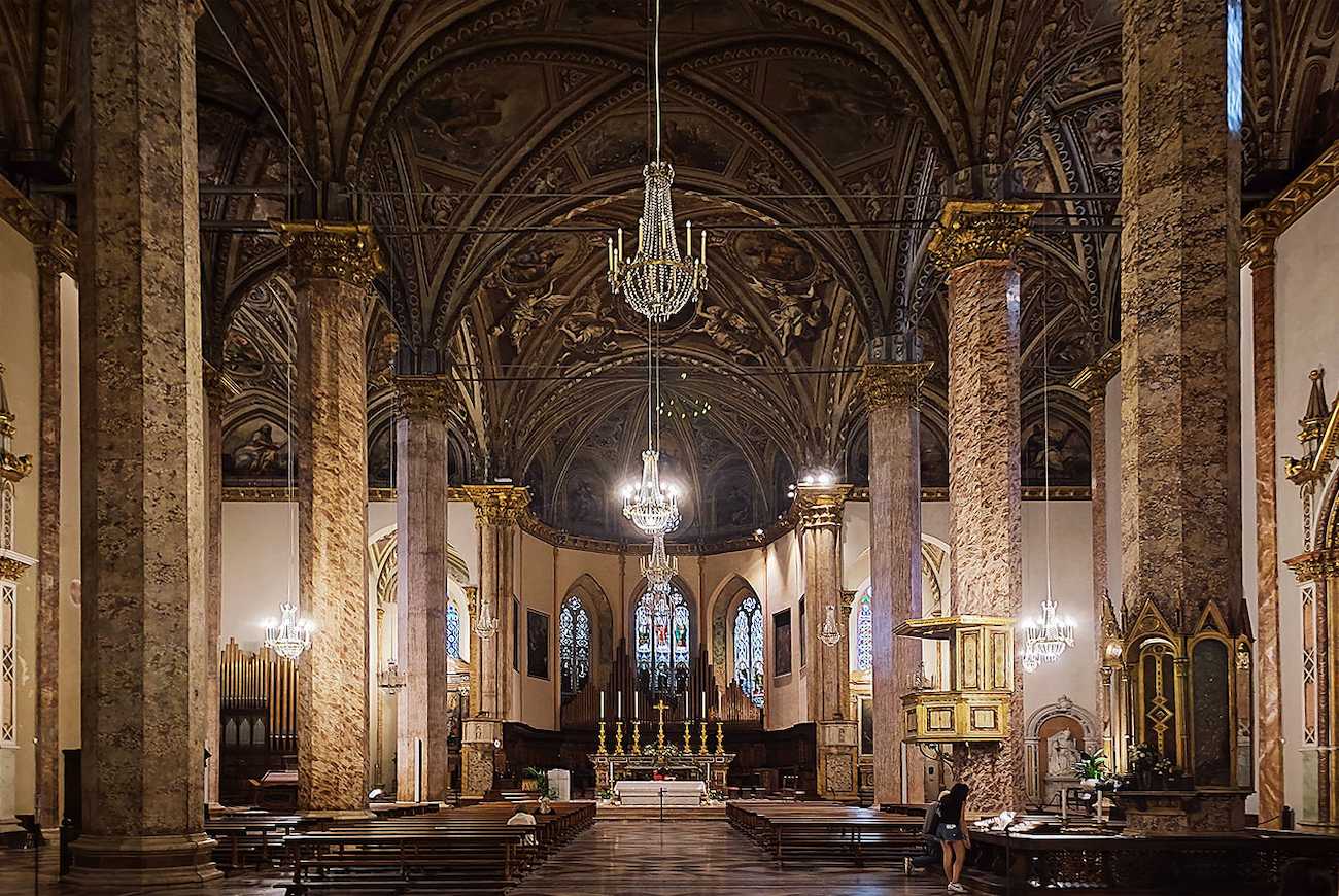 San Martino Cathedral is located in a secluded place, which is quite unusual for a cathedral generally found in the center of the city. The Cathedral, with its polychrome marble façade, inspired by the cathedral of Pisa, stands solemn and elegant, surrounded by civil and religious buildings. It was built in the 6th century in Gothic and Romanesque styles and dedicated to San Martino, who was a knight. One of the 3 arches of the portico is smaller due to the pre-existing bell tower, 60 m (197 ft) high and equipped with 7 bells. A labyrinth, a symbol linked to pilgrimage, is carved on the pillar close to the bell tower. In fact it is said that under the portico the pilgrims traveling along the Via Francigena used to trade with money changers. The marble inlay floor inside the Cathedral, with a mix of geometric and religious themes, is reminiscent of the one in the duomo of Siena. The church houses the funeral monument of Ilaria del Carretto, the Holy Conversation painting by Ghirlandaio and the Last Supper painting by Tintoretto.