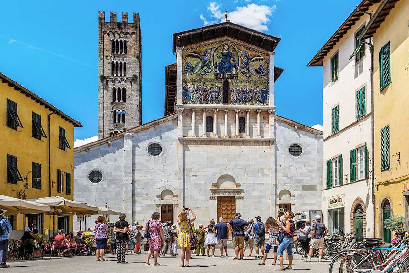 Lucca was founded by the Etruscans and became a Roman colony in 180 BC. The rectangular grid of its historical center preserves the Roman street plan and traces of the amphitheater can be seen in Piazza dell’Anfiteatro. Lucca, a town of merchants and weavers, maintained its autonomy as an independent state for several centuries until 1805 when it was conquered by Napoleon, who installed his sister Elisa Bonaparte Baciocchi as Princess of Lucca. Lucca is a remarkable art city, famous for its monuments, especially the 16th century walls which remain intact, even as the city expanded and modernized, unusual for cities in the region. Initially built as a defensive rampart, once the walls lost their military importance they became a perimeter of about 4,223 m (13855 ft) around the historic center with broad, tree-lined pathways which serve now as a bicycle lane and a pedestrian promenade, the Passeggiata delle Mura Urbane. Lucca is known as the city of 100 churches among which the most interesting are certainly San Frediano and San Michele and the Cathedral of San Martino. The opera composer Giacomo Puccini was born here and the city holds Concert Festivals showcasing his operas every night in the San Giovanni Church.