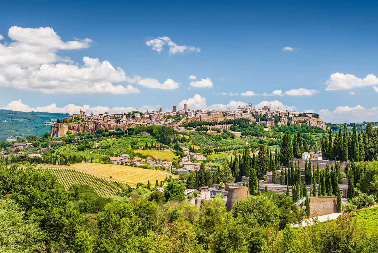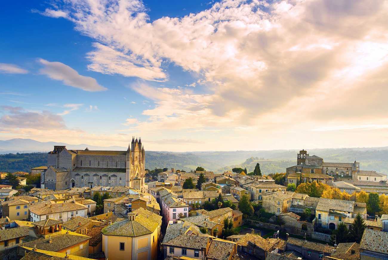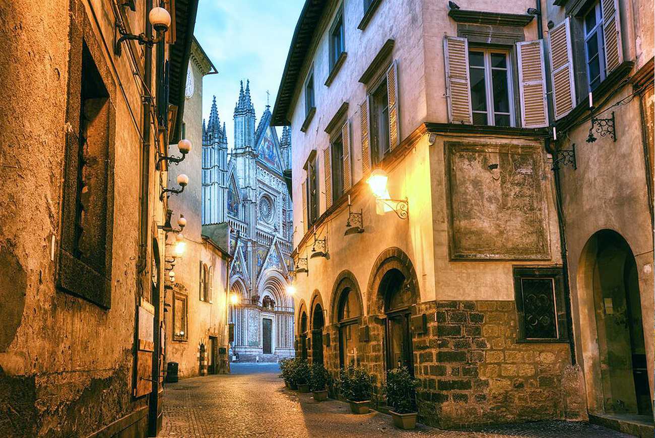 Orvieto is a small city perched on the flat summit of a large butte of volcanic tuff. It rises dramatically 150 m high (almost 500 ft) with defensive walls built of the same stone. The origins of Orvieto date back to the 9th century BC. as evidenced by the traces found of the Villanovan community (early Iron Age), the ancestors of the Etruscans. Today in the underground city it is still possible to see an intricate network of caves, grottoes and numerous wells that date back to Etruscan times. With the arrival of the Romans, Urbs Vetus (old city), which is the origin of the current name of Orvieto, was annexed to the Empire in the 3rd century BC. With the fall of the Roman Empire began a turbulent period characterized first by the arrival of the barbarians and then by the invasion of the Lombards. The Middle Ages mark an important moment for the city, a period of great wealth, beauty and expansion, which reached its peak between the 13th and 14th centuries and its very particular urban structure has remained substantially unchanged since then. Once again, as often happens in Italian cities, including Orvieto, the greatest expression of the art of this period and of the Renaissance is its marvelous cathedral. Its imposing size can be enjoyed from the terrace at the top of the Torre del Moro.