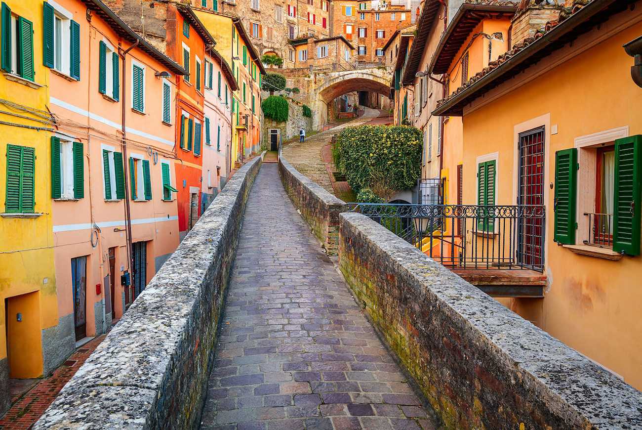 Capital of the Umbria region, Perugia boasts a thriving international student scene thanks to its two universities – the University of Perugia founded in 1308 and the University for Foreigners, the oldest of its kind in Italy – and is famous for its international events such as Umbria Jazz, which attracts tourists from all over the world. Encircled by Etruscan walls, the city has preserved its medieval churches, winding cobblestone streets, and an impressive Renaissance and Baroque architecture. Perugia was the hub of the great Renaissance Umbrian school of painting, which reached its height in the 15th century. In the center of the city the magnificent Piazza Quattro Novembre, a former Roman forum, contains the gothic Palazzo dei Priori (1293–1297) housing the National Gallery of Umbria’s remarkable collection of paintings and sculpture; the cathedral of San Lorenzo (1345–1430) and the splendid Fontana Maggiore, built between 1275 and 1278 by Nicola and Giovanni Pisano, a precious symbol of a lively and magnificent medieval Perugia. Other landmarks include the Rocca Paolina, a fortress symbol of papal authority (XVI century), and the Collegio del Cambio (1452–57), with frescoes by Pietro Perugino. Particularly notable among the many fine churches are San Angelo (5th and 6th centuries; on a circular plan); San Domenico (1305; rebuilt 1632) and San Severo, with a fresco by Raphael. The Perugia Aqueduct is one of the most particular attractions of the town. It is a rather complex hydraulic engineering work - started in Roman times and finished in the Middle Ages - because it transported water to a city full of gradients without using any pump. Decommissioned in the mid-1800s, today it offers one of the most beautiful and picturesque promenades in Italy.