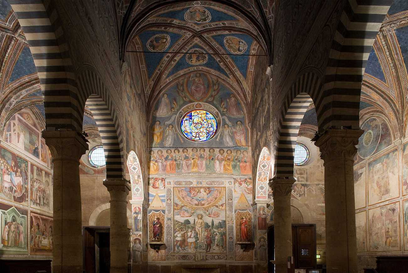 The Baptistry of San Giovanni Battista was built between 1310 and 1320. Its most important elements are the marble façade, in pure Sienese Gothic style and the hexagonal baptismal font, a fundamental example of Renaissance sculpture of the early 15th century. Made of marble, bronze and enamel, between 1417 and 1431, with contributions by the greatest sculptors of the time: Donatello, Lorenzo Ghiberti and Jacopo della Quercia. The frescoes, which completely decorate the vaults, represent a large and articulated religious cycle, among the best of the Sienese 15th century.
