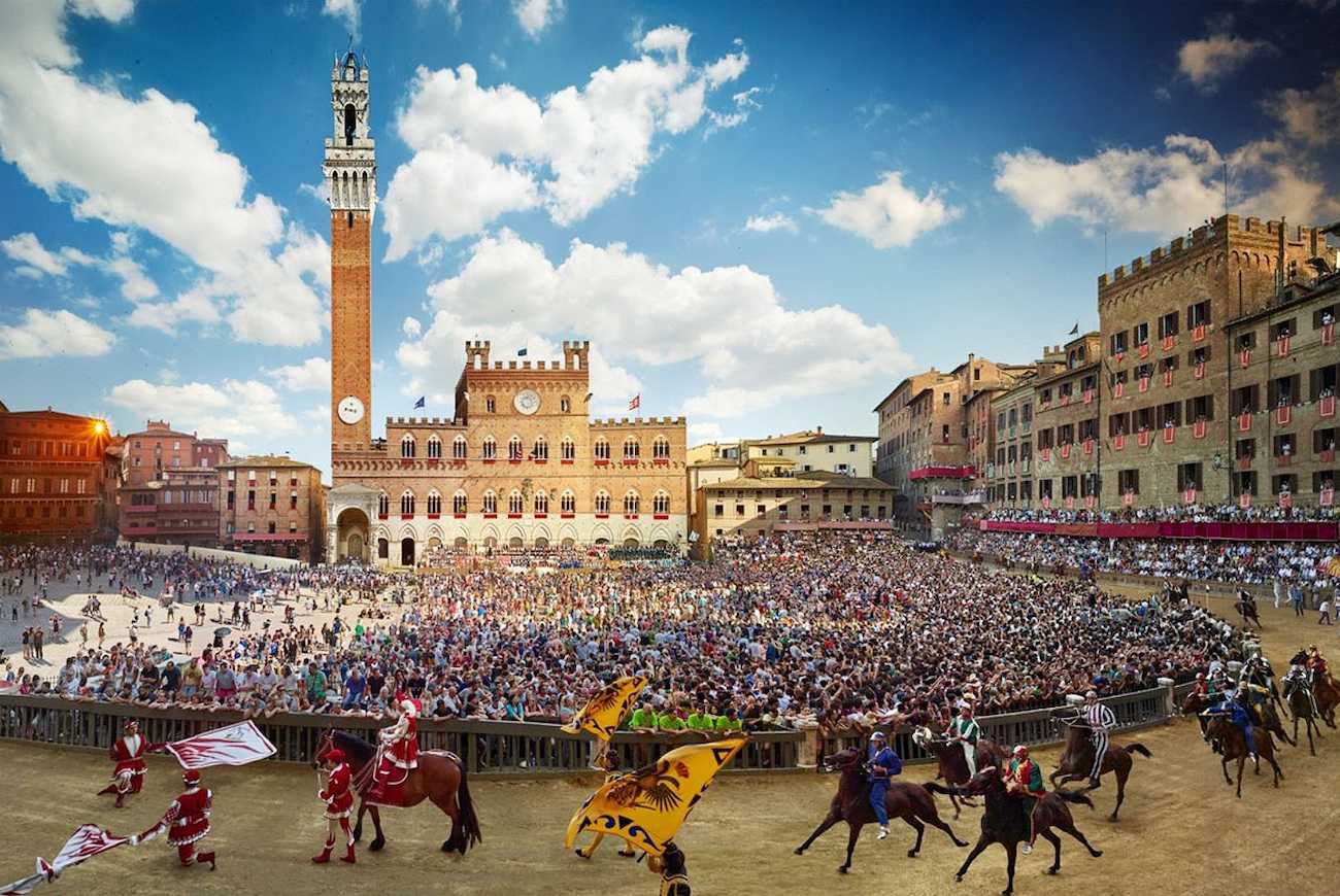Siena is one of the most unique and beautiful cities in Italy, full of Gothic and medieval monuments and Renaissance art that blends into the surrounding landscape. Siena’s main site and heart of the city is its central piazza known as Piazza del Campo, the unique shell shaped square where twice a year the worldwide famous Palio race is held. Siena is said to have been founded by Senius and Aschius, two sons of mythical Remus. When they fled Rome, they took the statue of the She-wolf to Siena, which became its symbol. Throughout the centuries, the city has preserved its Gothic appearance acquired between the 12th and 15th centuries, exemplified by the quintessential Sienese arch, introduced from the East during the Crusades. The arch dominated later building styles including the Renaissance era. During this period, the work of Duccio, the Lorenzetti brothers and Simone Martini influenced Italian and European art. Also of note are the city’s fountains, still fed by an extensive system of original tunnels. Siena is also famous for its wonderful culinary tradition, its wines and pastries, including the famous Panforte and the Ricciarelli, almond paste cakes.