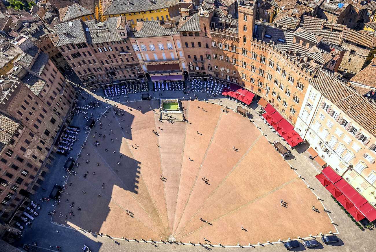 The Torre del Mangia, (Tower of the Eater) named after Giovanni di Balduccio nicknamed “Mangia” or “Mangiaguadagni” (profit-eater) because he was spending his earnings eating in the local taverns. The tower, located in Piazza del Campo, was built so high to match that of the Cathedral to symbolize that the Curia and the State in Siena had equal powers. It is 88 m (288 ft) high and from its top the view is truly breathtaking.